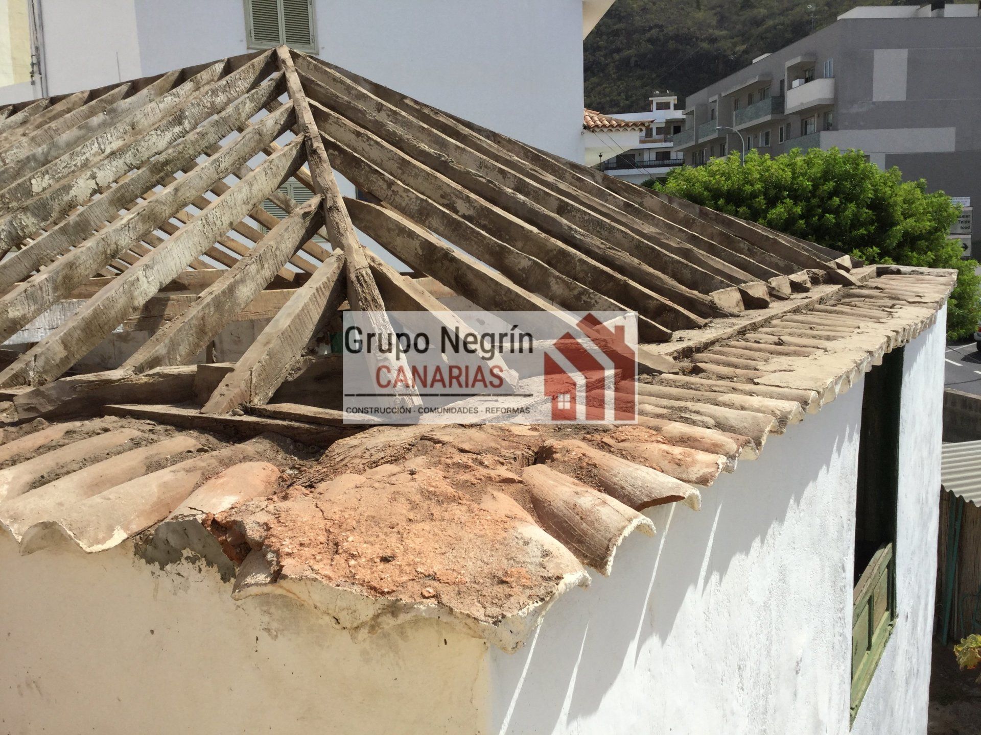 Quitamos la teja de la cubierta por completo, para su posterior colocación, y eliminamos todo el tablado que se encontraba en mal estado.