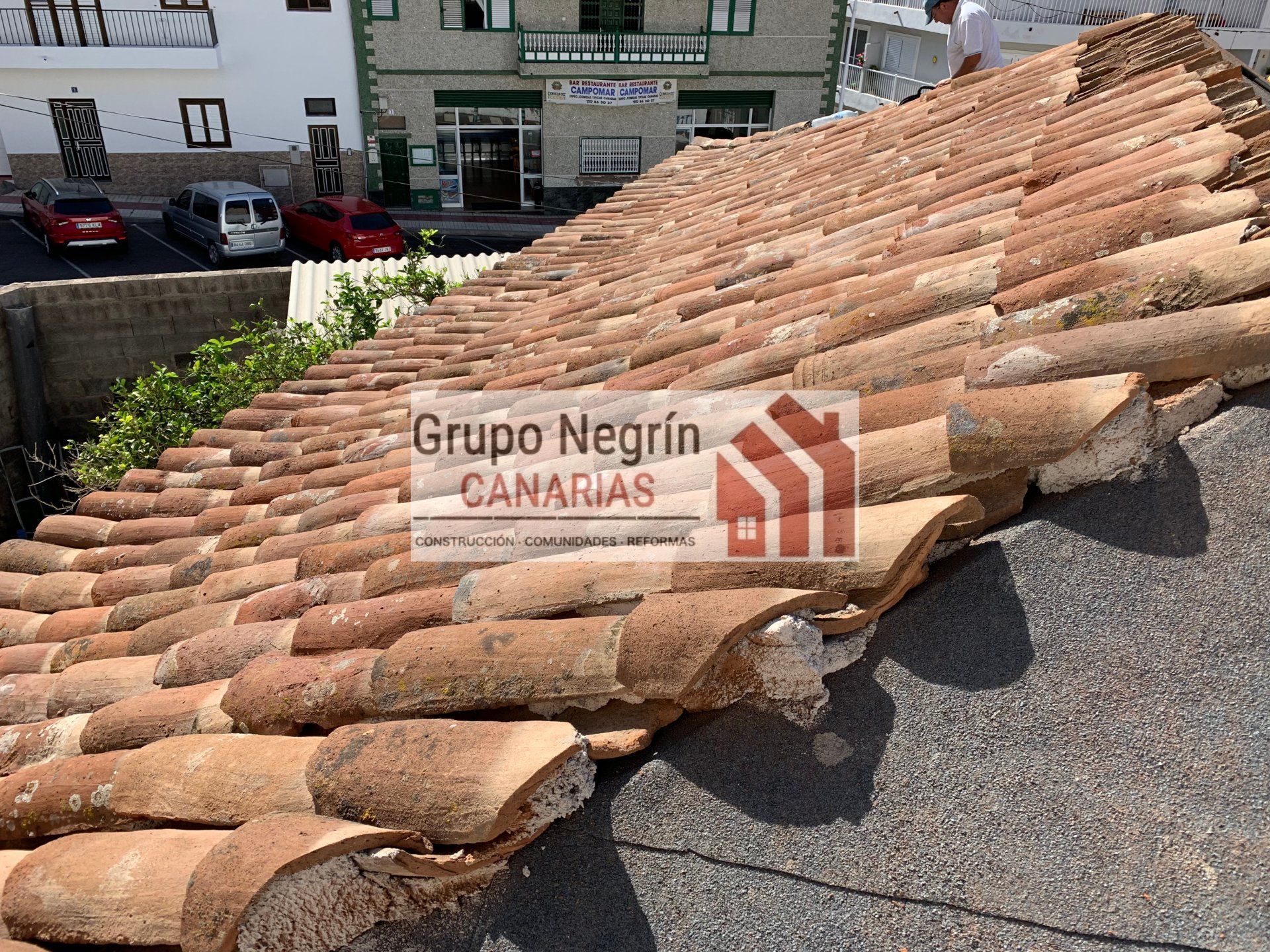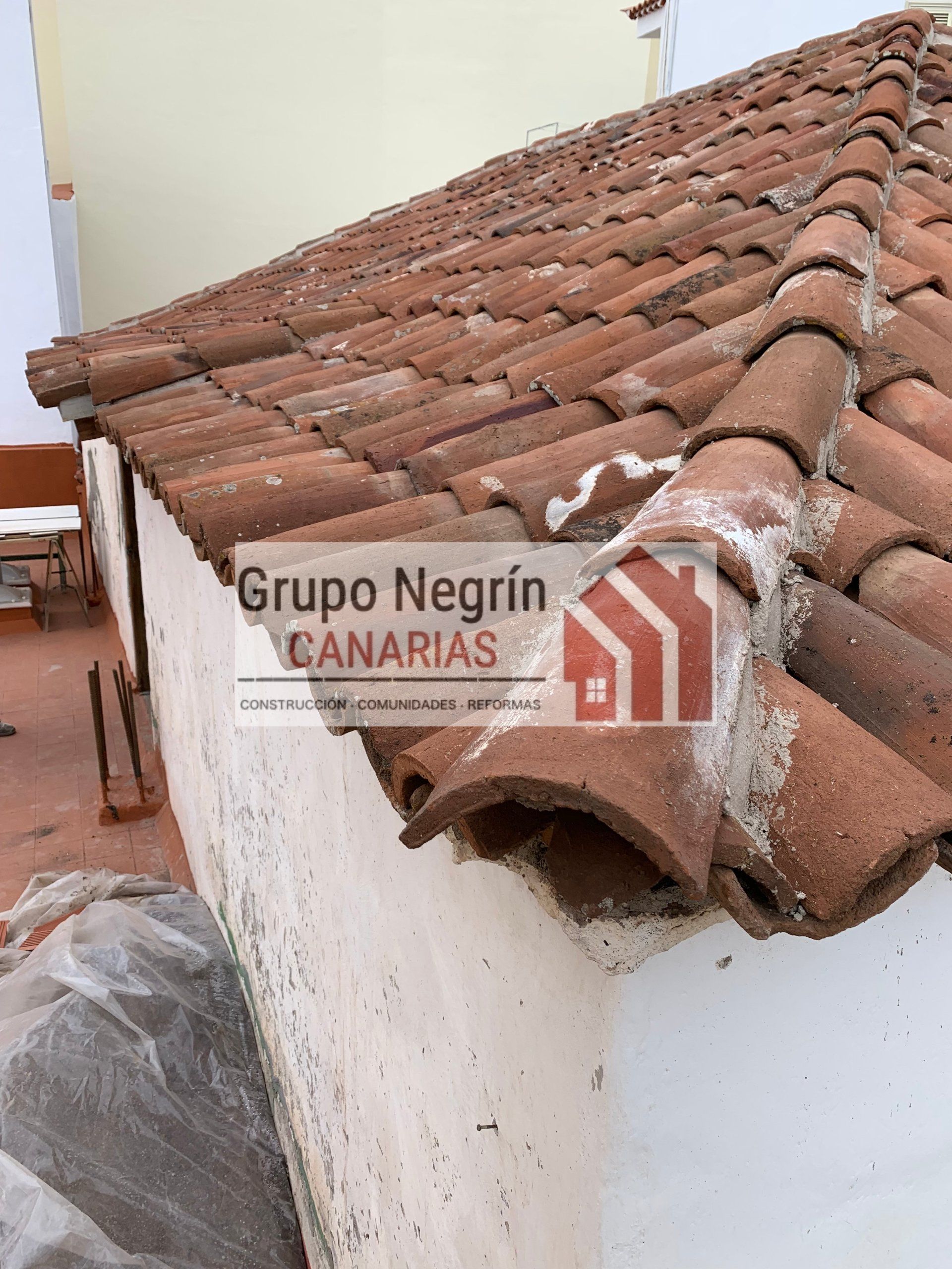 Por último, colocamos las tejas antiguas existentes debidamente rematadas.